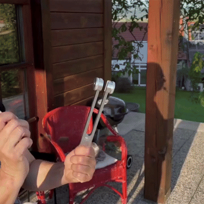 Gently strike the fork with the mallet or puck activator to set it vibrating - always hold it by the stem (not the prongs).