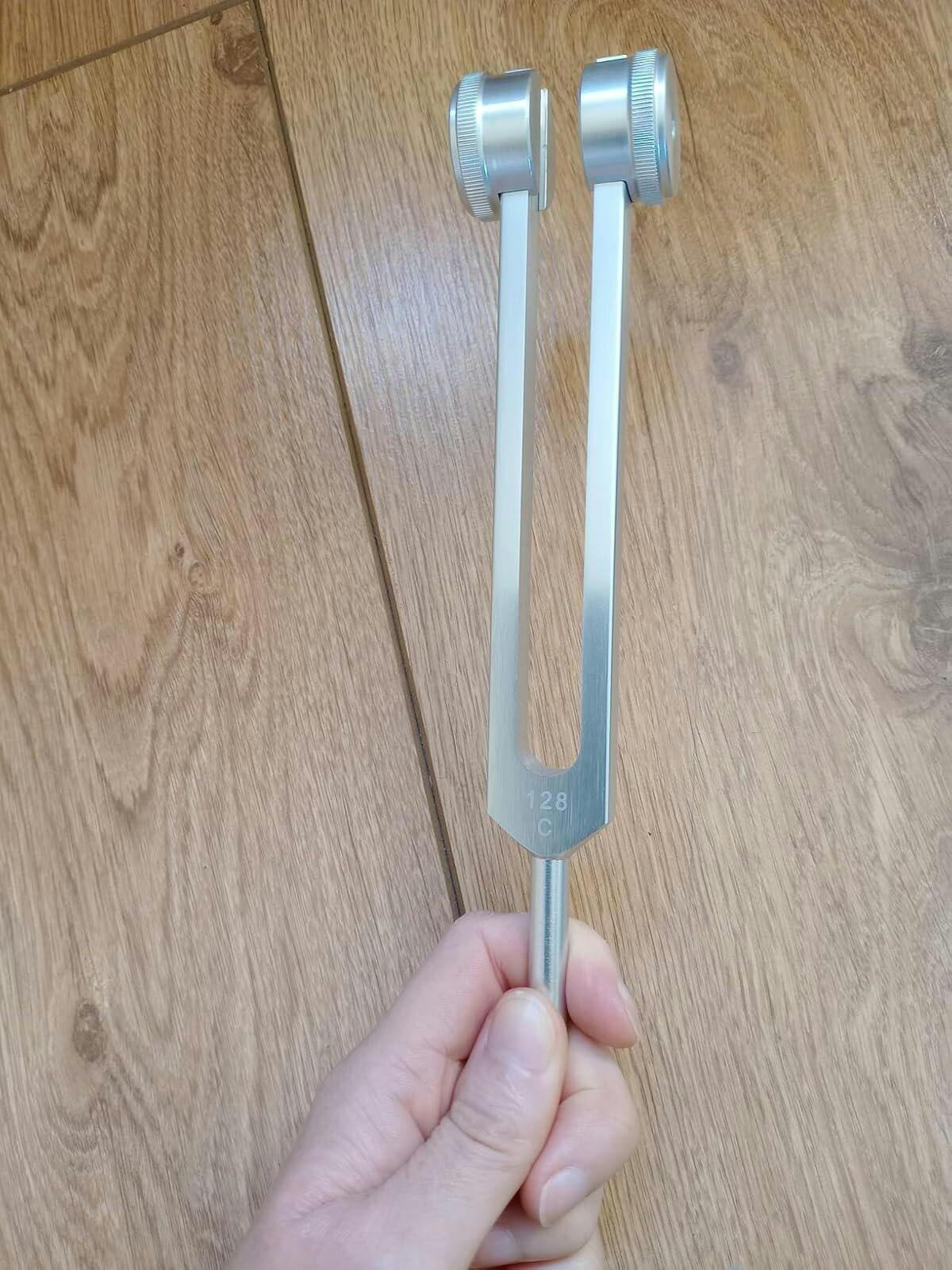 Tuning fork a musical instrument produces a high-frequency sound that is rarely heard elsewhere in the environment. In alternative holistic medicine this fork has been used to locate bone fractures and to help healing and balance energy.